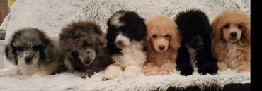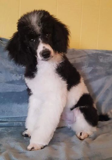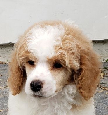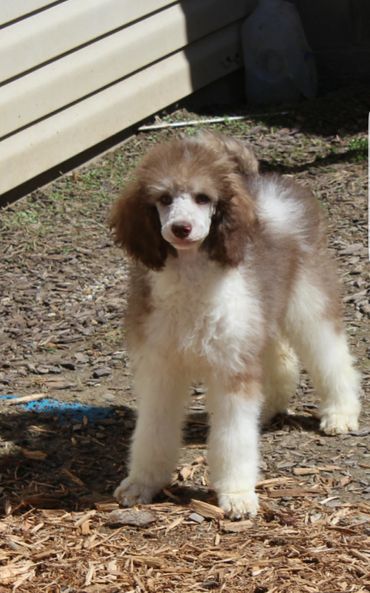 Loli is 18 inches and 25 pounds brown & white Parti Moyen poodle. She is a home grown girl , from 5 generations back! She has a fantastic temperament and personality. She is very happy and outgoing disposition. She love to play ball ,go for car rides and of course enjoys snuggle time! This gal is a good mix of energy and calmness. She truly is a dog that fits into any life style.