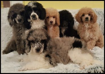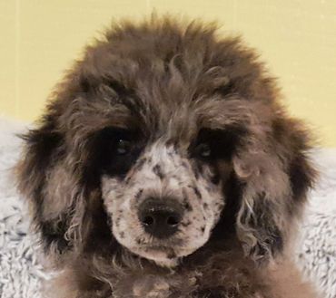 Angus is our " home grown" very " rare" cafe au lait sable moyen poodle! He is 17 inches and 25 pounds .He is our breeding 10 generations! He is striking in every way! He has gorgeous conformation/ structure, thick luscious coat and a temperament beyond compared. Angus is a people pleaser, he loves to live for you! He loves to swim, play fetch, both by himself and with people. He loves car rides , hiking, long walks and can not get enough snuggles!